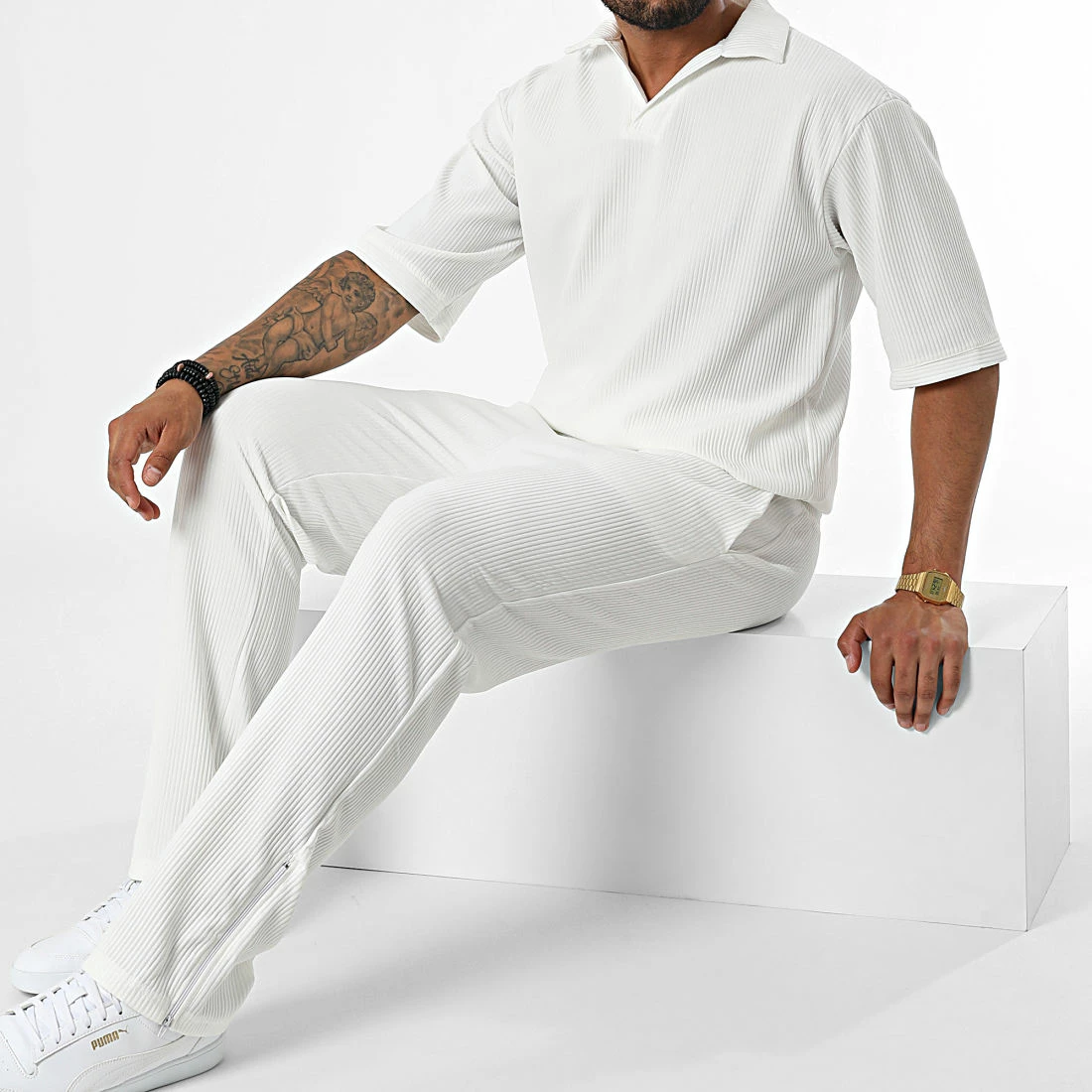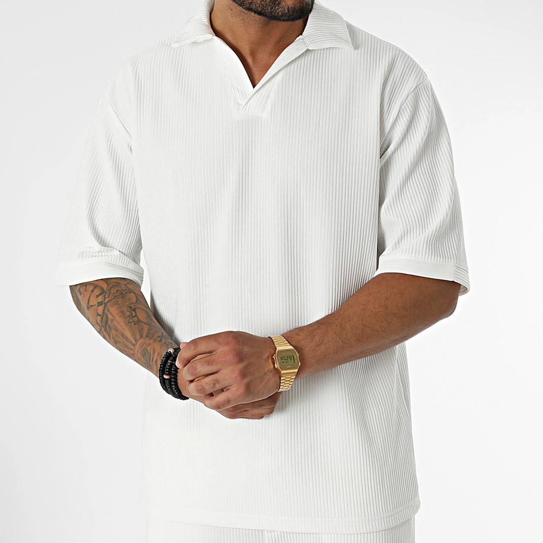 • Ensemble polo ample à manches courtes et pantalon décontracté en tissu côtelé