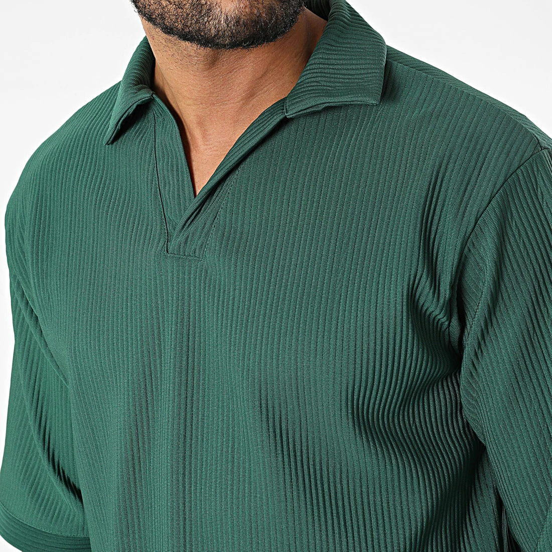 • Ensemble polo ample à manches courtes et pantalon décontracté en tissu côtelé