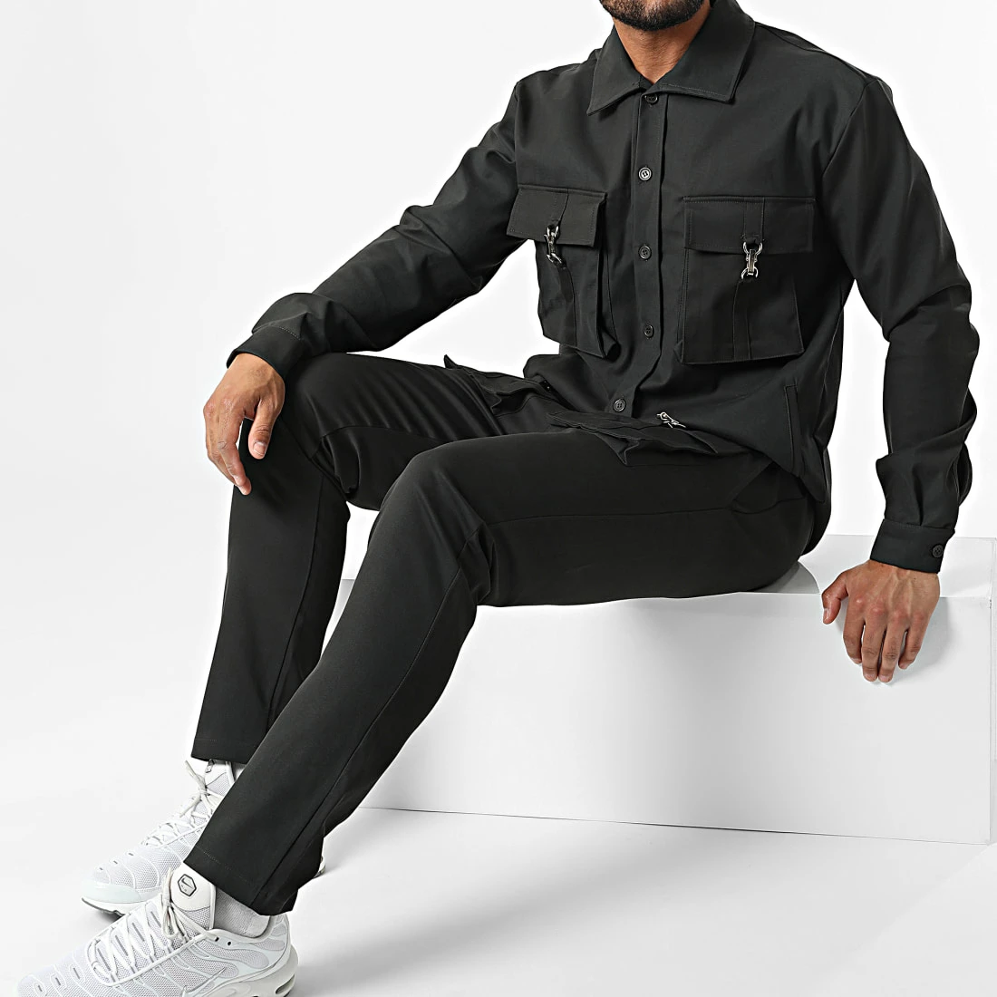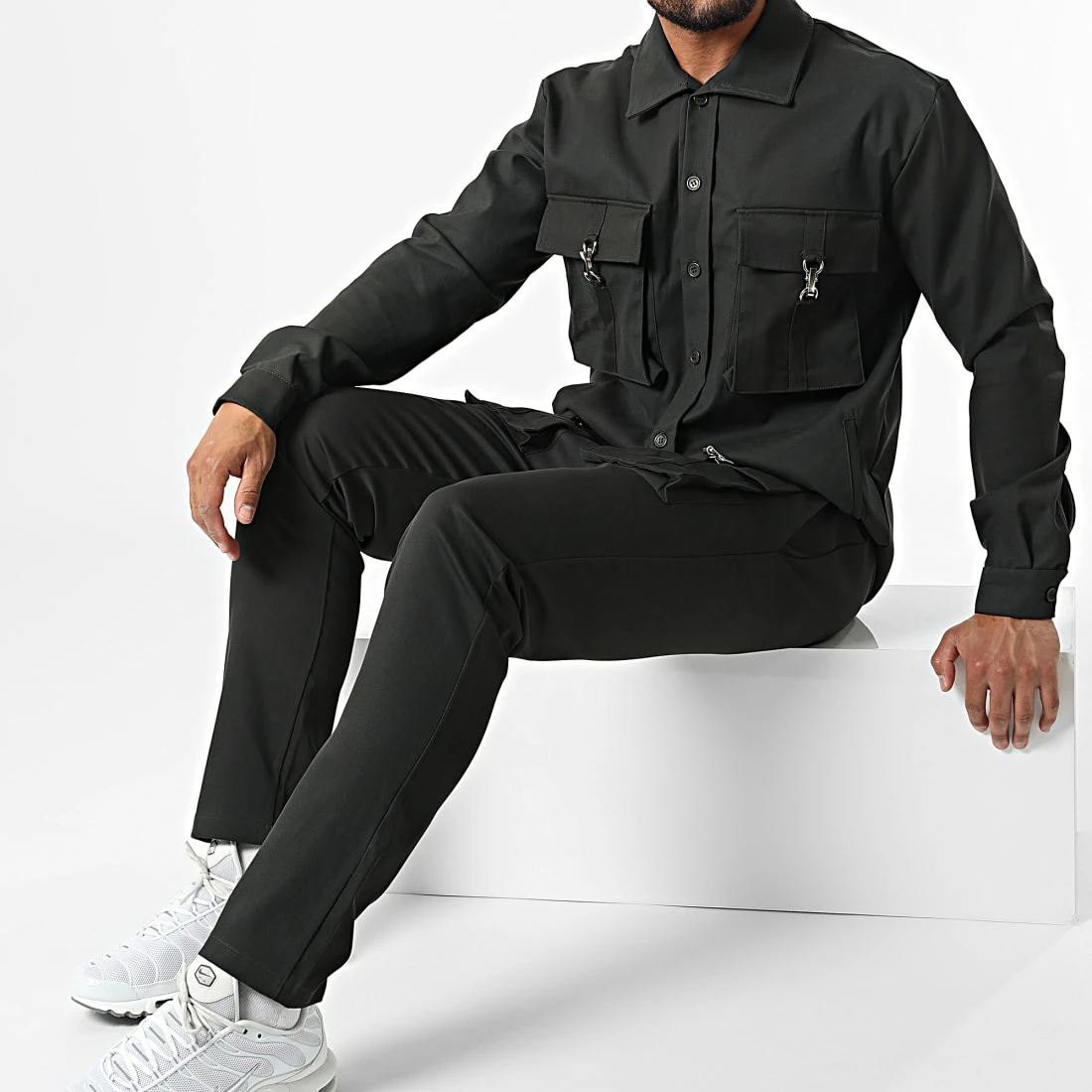 • Ensemble chemise manches longues et pantalon cargo en coton stretch