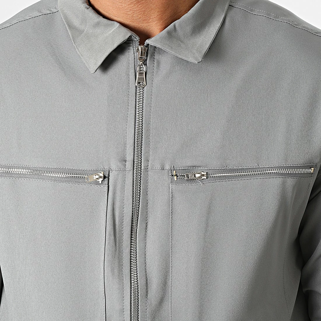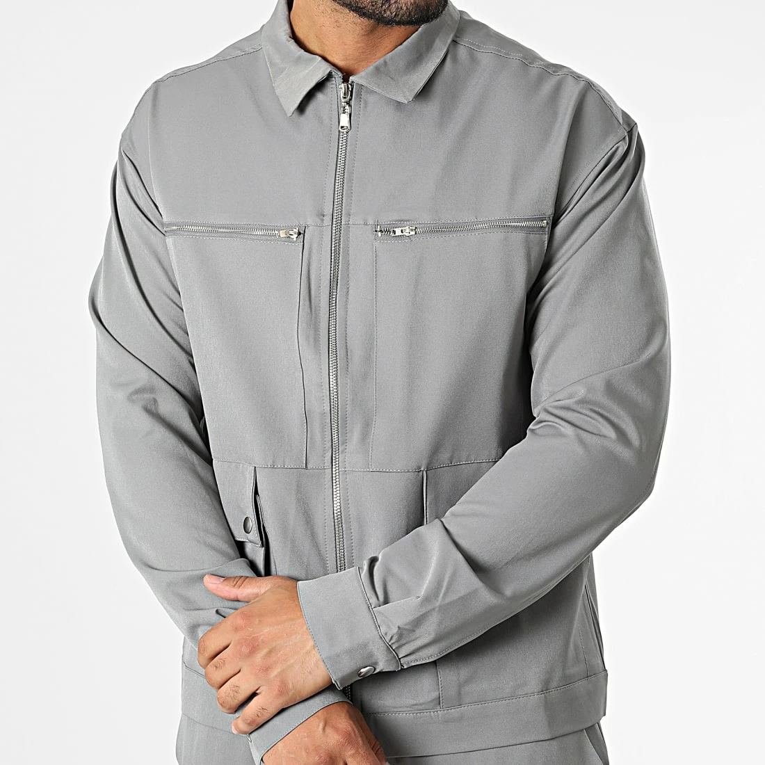 Ensemble Veste Zippée Et Pantalon Cargo KL-2093 Gris de ADJ