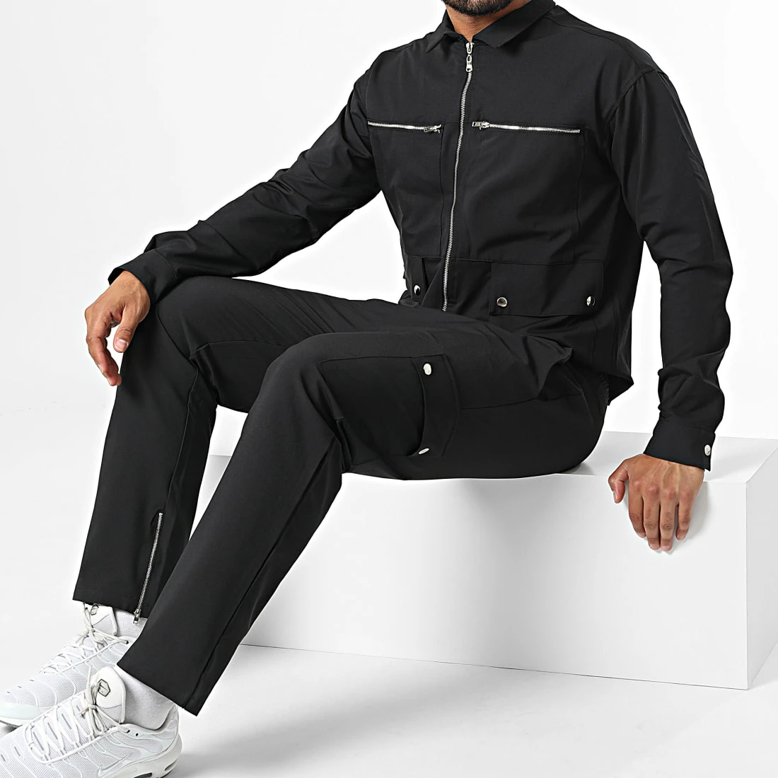 Ensemble Veste Zippée Et Pantalon Cargo KL-2093 Noir de ADJ
